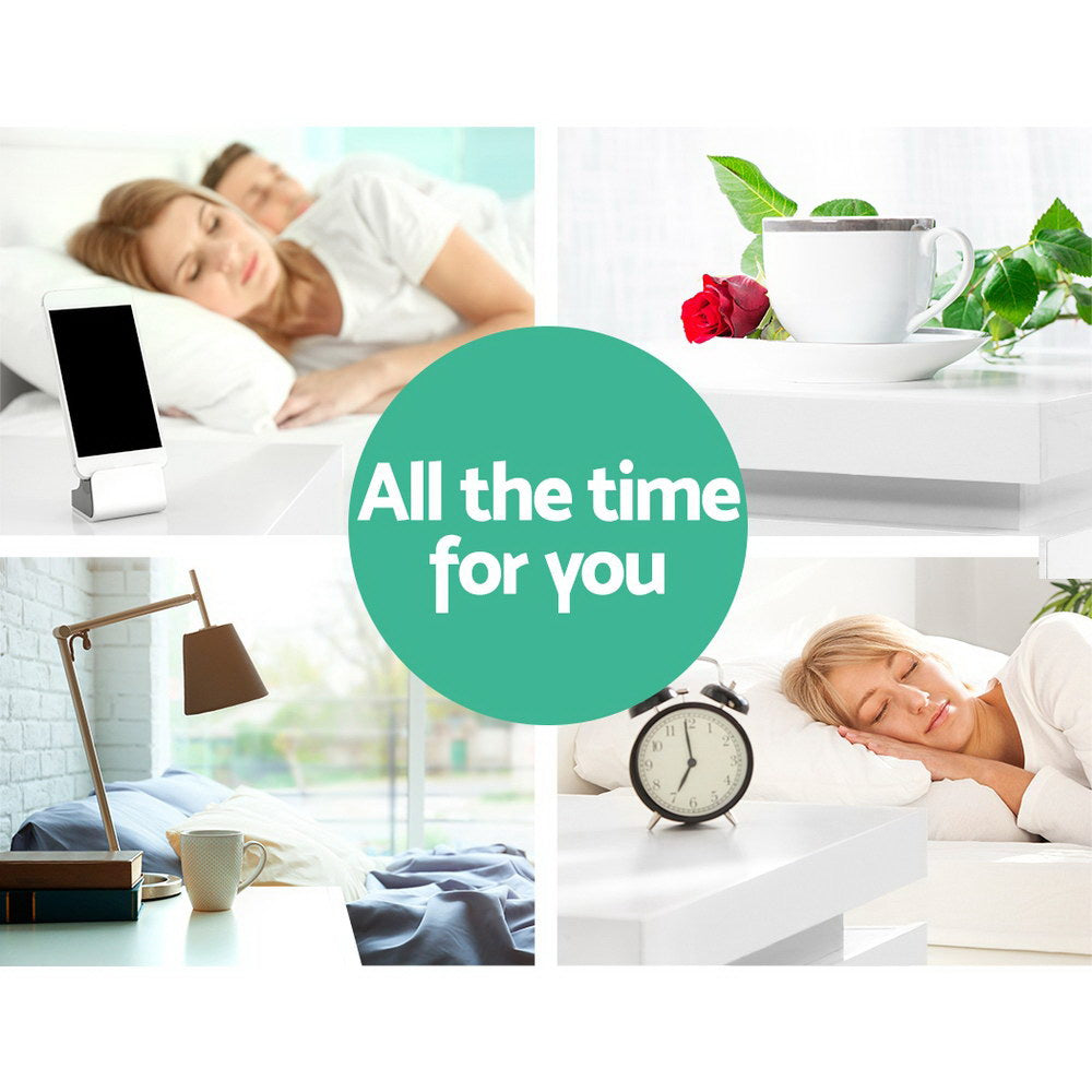 Tired of fumbling in the dark for a light switch in the middle of the night? With our Artiss LED Bedside Table, your problems are solved. The bedside table comes with built-in LED lighting that can be customised into 16 different colours to suit your preference. Not only will it create a beautiful ambience, it will also save you from buying extra bedside lamps or nightlights. Three deep drawers sliding on smooth anti-rust runners provide ample storage space. There is also a top storage compartment that opens with a lift-up lid like a treasure trunk, which you can fittingly fill with your own personal treasures. Better still, the handle-free design gives it a modern vibe that stands out from the mundane. Quality-made with 15mm thick melamine particle board and UV high gloss finish, the bedside table is durable and easy to maintain. And it will be the perfect addition to your modern bedroom with its contemporary and linear design. Or you can keep one in the living room to wow all your houseguests.